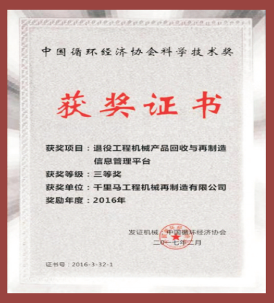 获奖项目:退役工程机械产品回收与再制造信息管理平台 获奖等级:三等奖