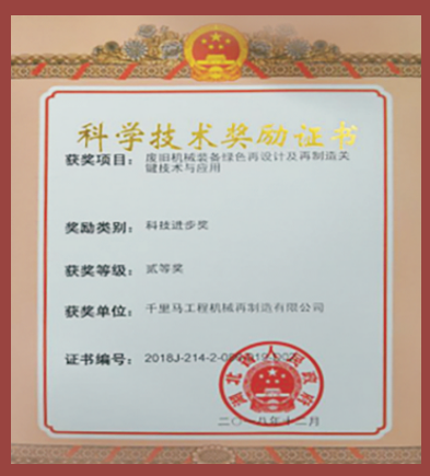 获奖项目:废旧机械装备绿色再设计及再制造关键技术与应用 获奖等级:二等奖